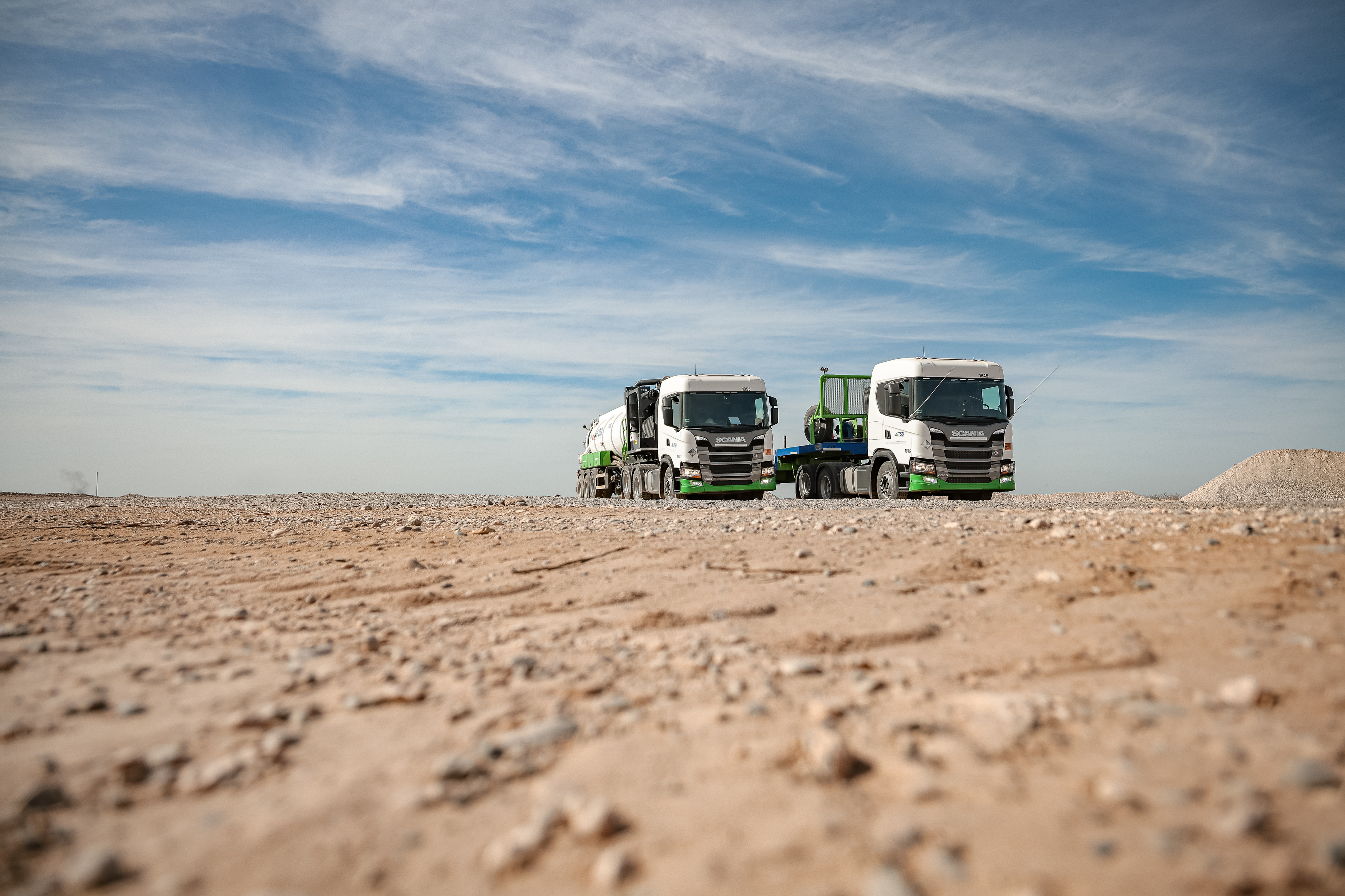 La especificación de los camiones se realizó de manera conjunta entre el equipo técnico de TSB, el concesionario patagónico Feadar y especialistas de Scania Argentina, teniendo en cuenta las particularidades de la operación en yacimientos petroleros, donde predominan caminos de ripio, pendientes pronunciadas y condiciones climáticas extremas.