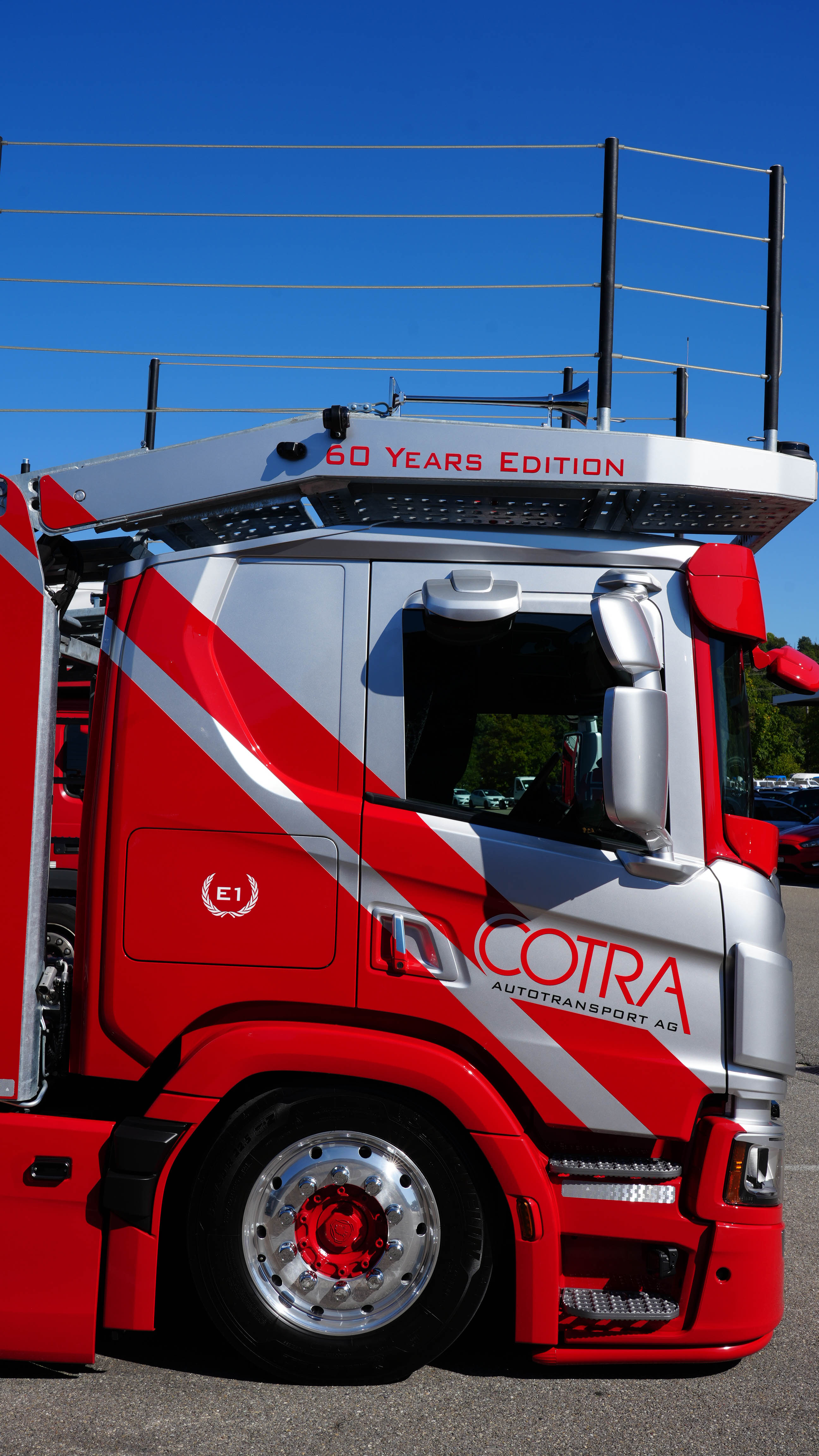 Die Inbetriebnahme fällt zusammen mit dem 60-jährigen Firmenjubiläum der COTRA. Das in einer internen Arbeitsgruppe entwickelte Jubiläumsfahrzeug erhielt ein exklusives Design, das intern wie extern grosse Anerkennung findet. Fahrer Stefan Moser, dem die Ehre zuteil wurde, den ersten vollelektrischen Scania zu steuern, zeigt sich begeistert: „Das Fahrgefühl ist ruhig, komfortabel und stressfrei – zurück zu einem Diesel käme für mich nicht mehr infrage.“