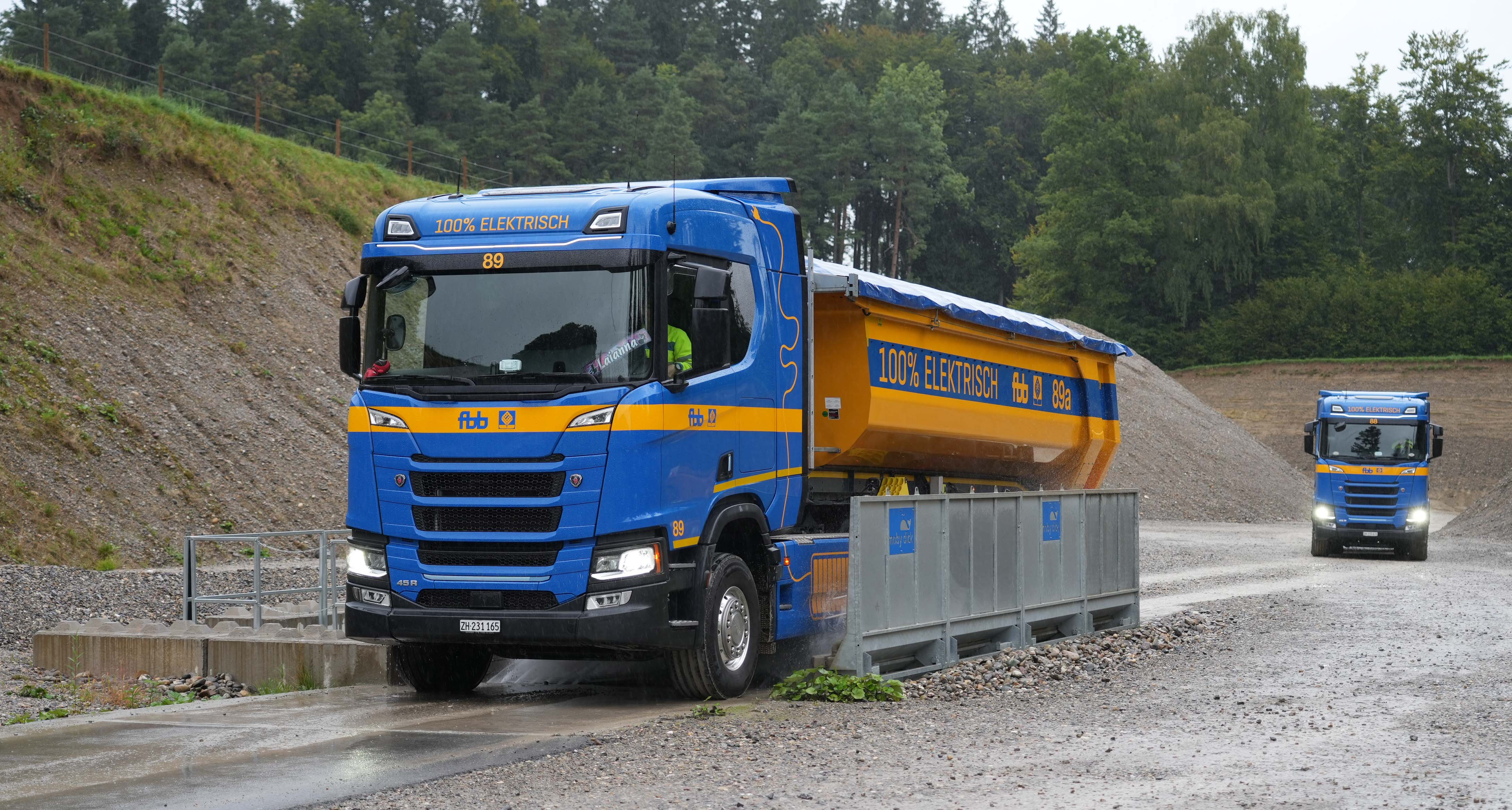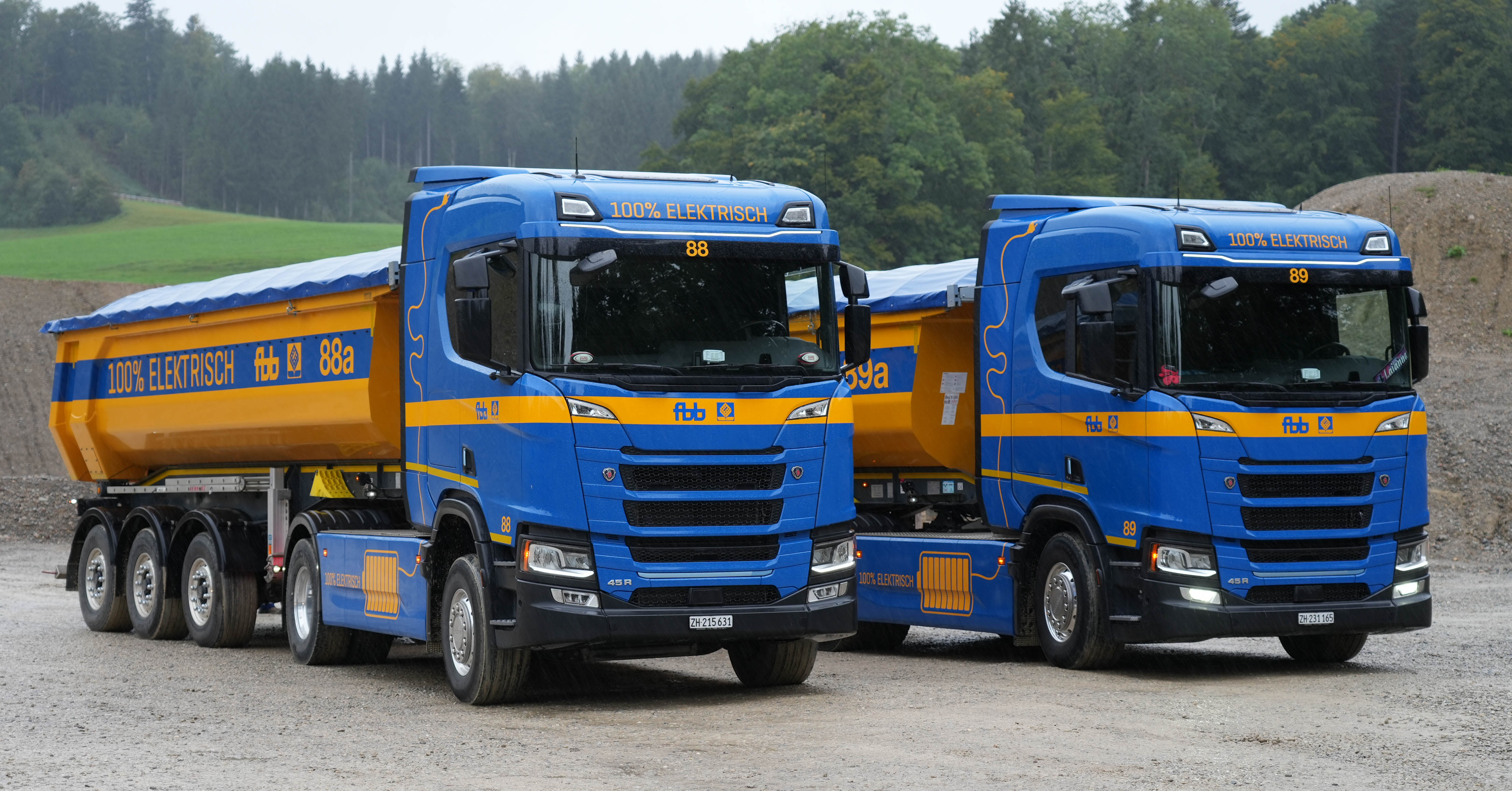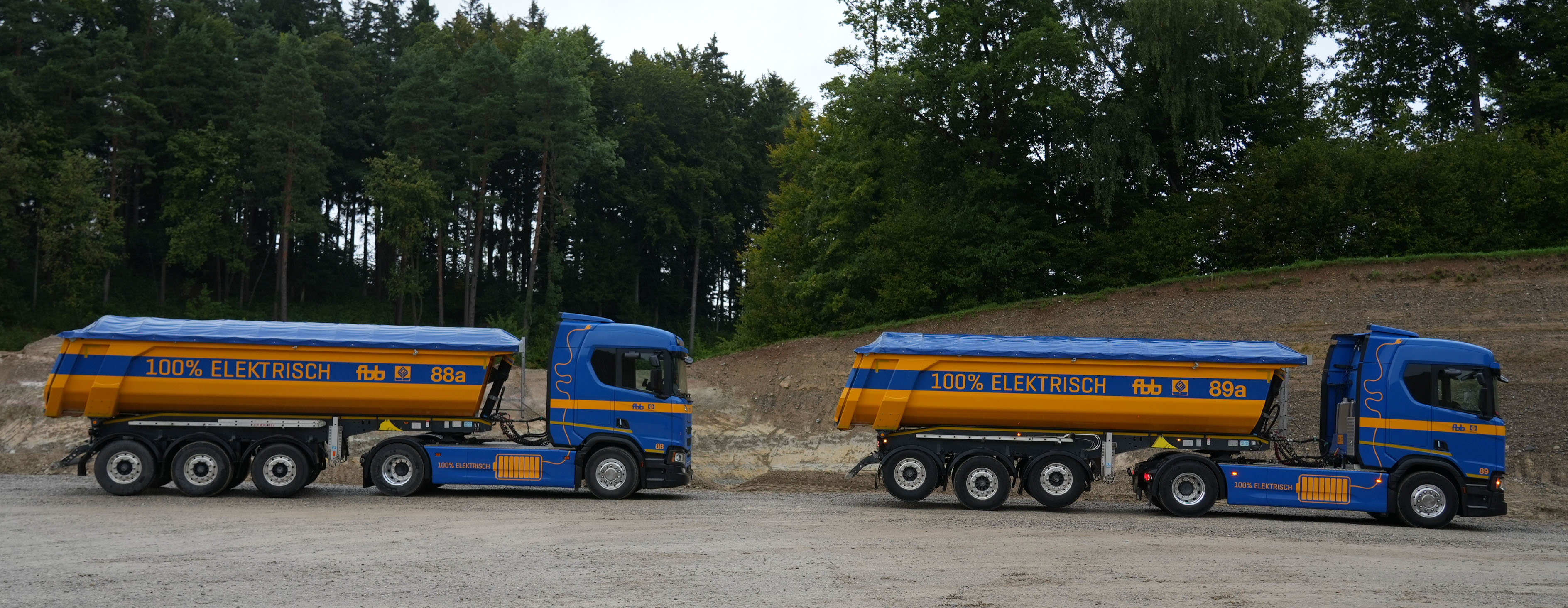 Im Juni 2024 konnte die FBB Unternehmen als erstes Transportunternehmen in der Schweiz eine vollelektrische Scania Sattelzugmaschine vom Typ 45R A 4x2 NB in Betrieb nehmen. Bereits einige Wochen später stiess auch bereits eine zweite, identische Sattelzugmaschine zum Fuhrpark hinzu und seither werden diese beiden Fahrzeuge in unterschiedlichsten Einsatzbedingungen eingesetzt und tagtäglich auf Herz und Nieren getestet.