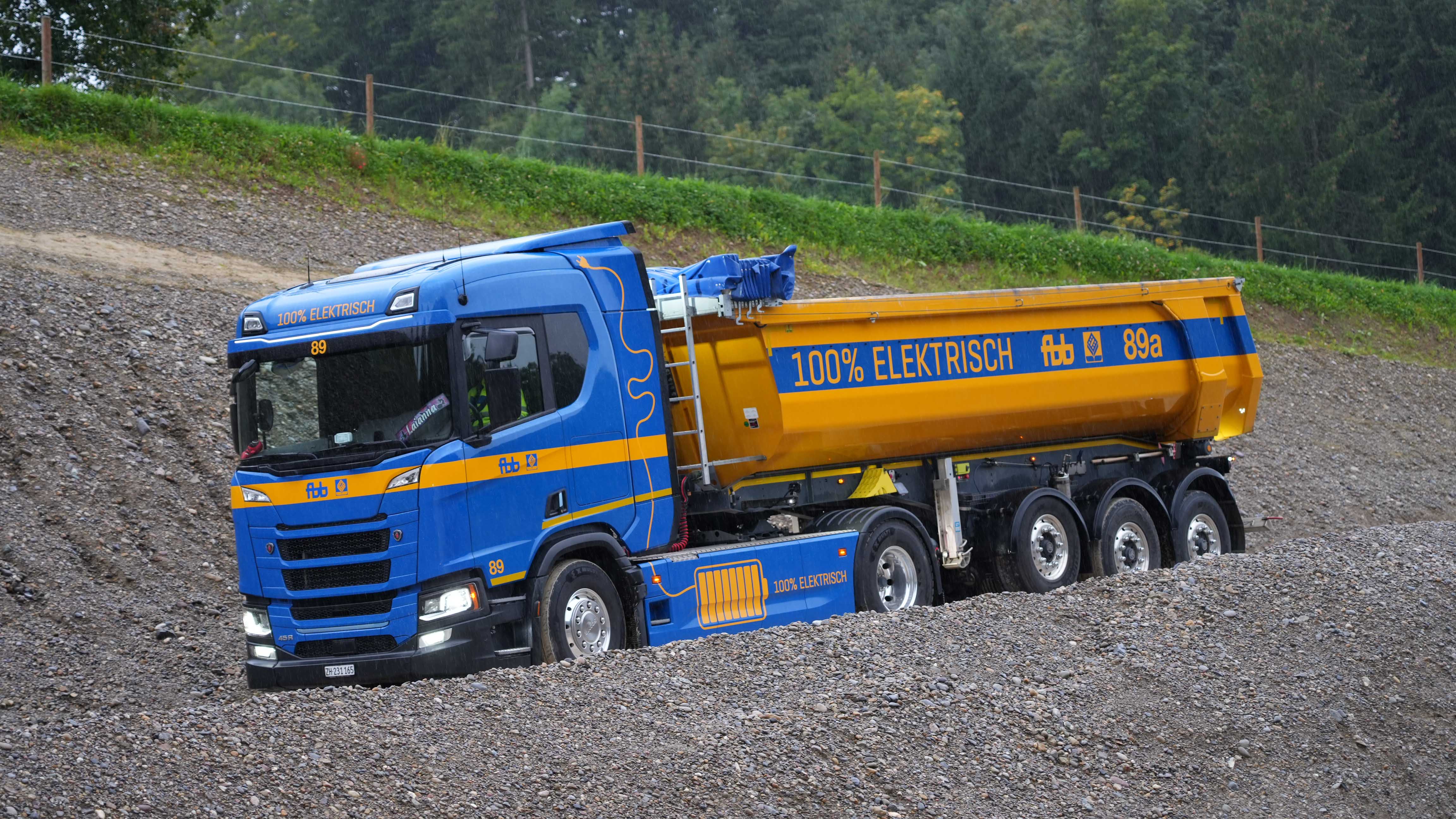 Anfänglich war im Betrieb eine gewisse Zurückhaltung zu spüren, was den Einsatz der beiden BEV-Scania betraf. Doch mit jedem weiteren Einsatz stieg aber auch das Vertrauen in das neue Fahrzeug mit seinem vollelektrischen Antrieb, seinem etwas längeren Radstand und höheren Leergewicht. Doch heute kommen die beiden Sattelzugmaschinen für den Transport von Komponenten, ausgebautem Strassenasphalt wie Transport von frischem Neu-Asphalt, Wandkies oder auch normalem Aushub-Material zum Einsatz. Überwiegend in der Region des Zürcher Oberlandes oder auch mit Asphalt-Reststoffen nach Basel in den Rheinhafen. Also alles ganz «normale» Einsätze, einfach nur mit einem vollelektrischen Antrieb. Schon kurz nach den ersten Einsätzen konnte mit Genugtuung festgestellt werden, dass die beiden neuen Fahrzeuge gleichwertig eingesetzt werden können. Durch den etwas längeren Radstand und der optimalen Gewichtsverteilung sind sogar Kiesgruben-Einsätze möglich, da der tiefe Schwerpunkt und das höhere Leergewicht eine optimale Traktion ergeben.