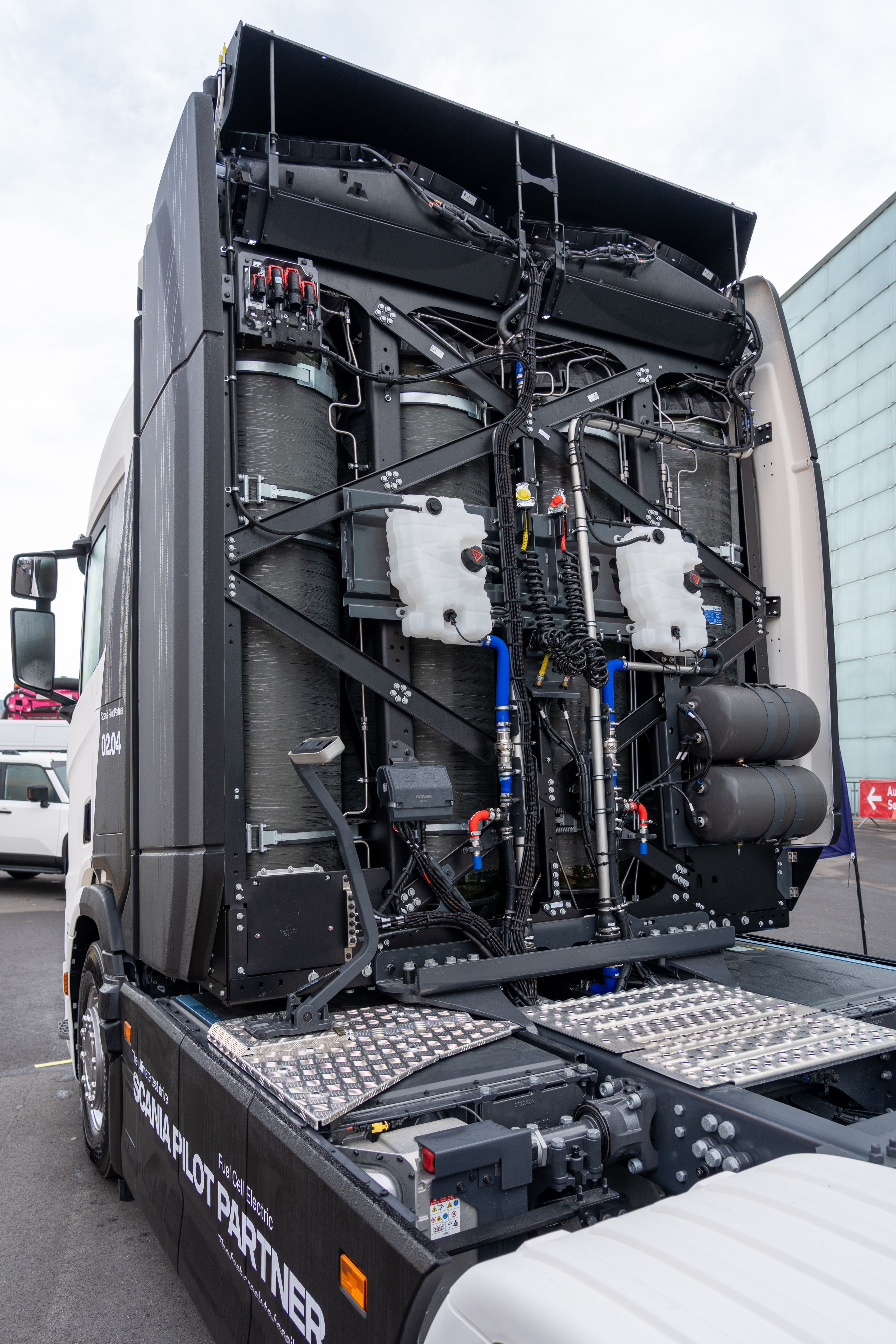 Der vorgestellte Lkw basiert auf dem elektrischen Antriebsstrang von Scania, kombiniert mit einem Brennstoffzellensystem. Dieses wandelt Wasserstoff in elektrische Energie um, die den Elektromotor antreibt. Als einzige Emission entsteht Wasserdampf. Das Fahrzeug erreicht eine Reichweite von bis zu 1’000 Kilometern und wird im realen Transportbetrieb getestet. Die Kombination aus hoher Reichweite, kurzen Betankungszeiten und elektrischer Effizienz macht Brennstoffzellen besonders interessant für den Fernverkehr. Mit dieser Technologie erweitert Scania seine Multi-Energy-Strategie – von batterieelektrischen Fahrzeugen über Bio-Treibstoffen bis hin zu Wasserstoff – um je nach Einsatzbereich den Übergang zu fossilfreien Transportlösungen zu ermöglichen.