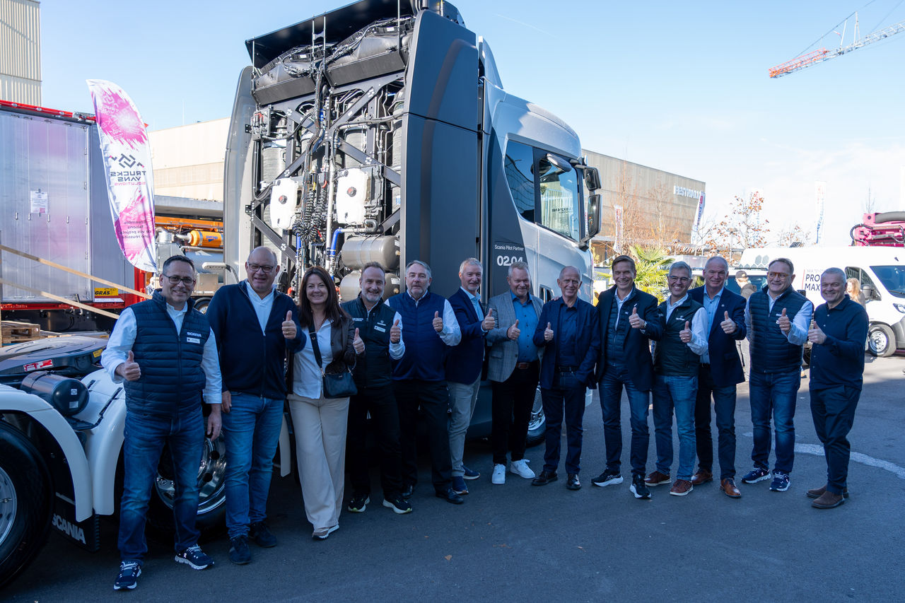 Mit der Premiere in Bern setzt Scania ein sichtbares Zeichen für Fortschritt in der nachhaltigen Transporttechnologie. Im Rahmen der Messe überreichte Scania-CEO Christian Levin symbolisch die Schlüssel an die Schweizer Pilotkunden.