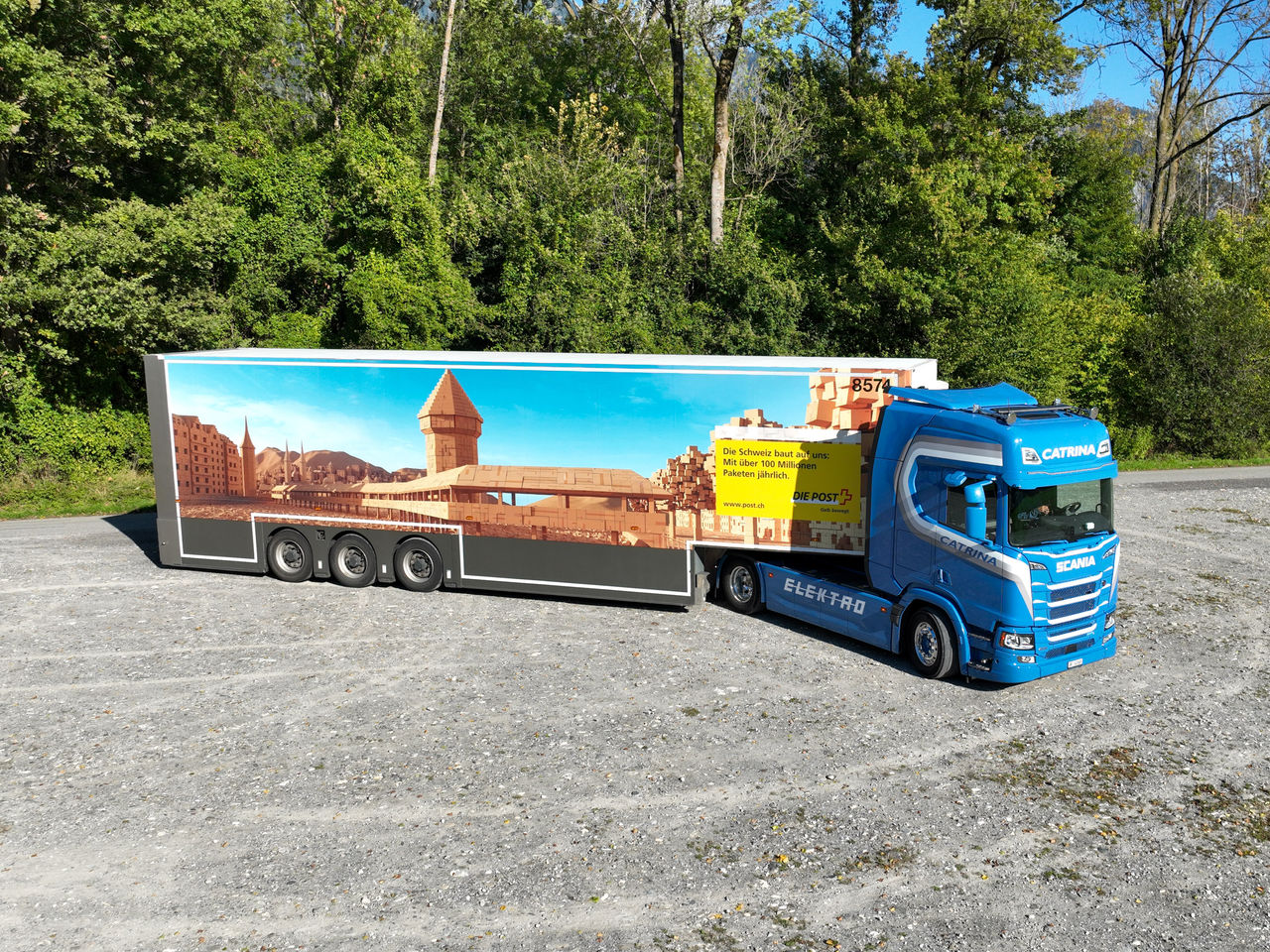 Ob regionale Kippertransporte, nationale Überlandfahrten, der Betrieb einer eigenen Deponie oder anspruchsvolle Postlogistik: Catrina bietet ein breites Spektrum moderner Dienstleistungen. Für Inhaber Marcel Catrina und Sohn Renato steht fest: „Zuverlässigkeit, Kraft und Fahrkomfort – der Scania 45R passt perfekt zu unseren Anforderungen.“