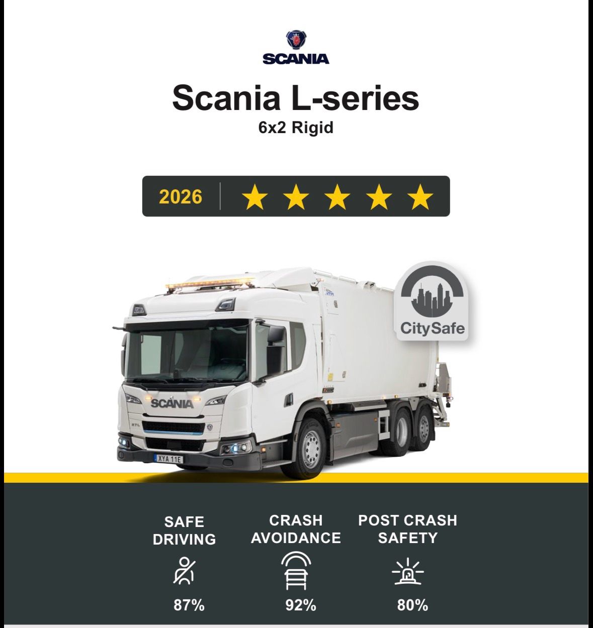 „Bei Scania stehen die Sicherheit und unsere Kunden an erster Stelle, und die Tatsache, dass unsere L-Kabine von Euro NCAP mit fünf Sternen ausgezeichnet wurde, ist ein Beweis dafür, dass wir unser Engagement in die Tat umsetzen“, sagt Lars Gustafsson, Leiter Trucks. „Diese Anerkennung ist ein Meilenstein in unserem langfristigen Bestreben, den Wandel hin zu einer sicheren und unfallfreien Strasse ohne Unfälle.“