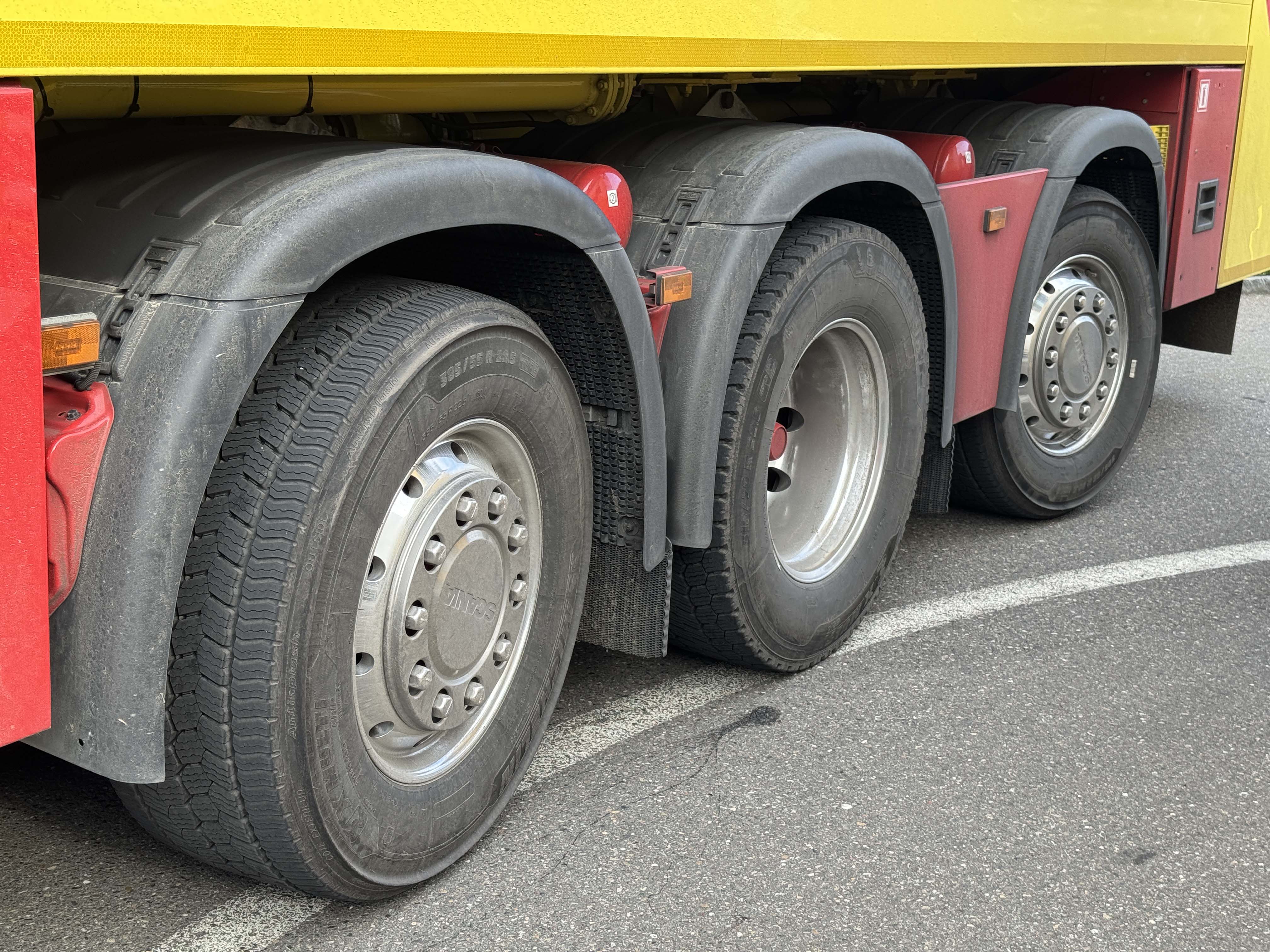 Durch lediglich eine angetriebene Hinterachse stehen beim neuen Fünfachser zugleich auch erstmals vier lenkbare Achsen zur Verfügung, was das Fahrzeug sehr wendig werden lässt. Bei einer Fahrzeuglänge von 11,6 Meter ein gern genommener Vorteil, woran sich der Fahrer Francesco Rubio zuerst noch etwas gewöhnen musste. Da das Fahrzeug einen anderen Radius fährt und das Heck dadurch mehr ausschwenkt, wird im Heckbereich etwas mehr Freiraum benötigt. Wichtig bei der neuen Radformel ist zudem, dass die Achslasten mit zweimal 9t, 10t, 11t und nochmals 10t jederzeit über genügend Reserven verfügen, um den gesetzlichen Vorschriften entsprechen zu können.