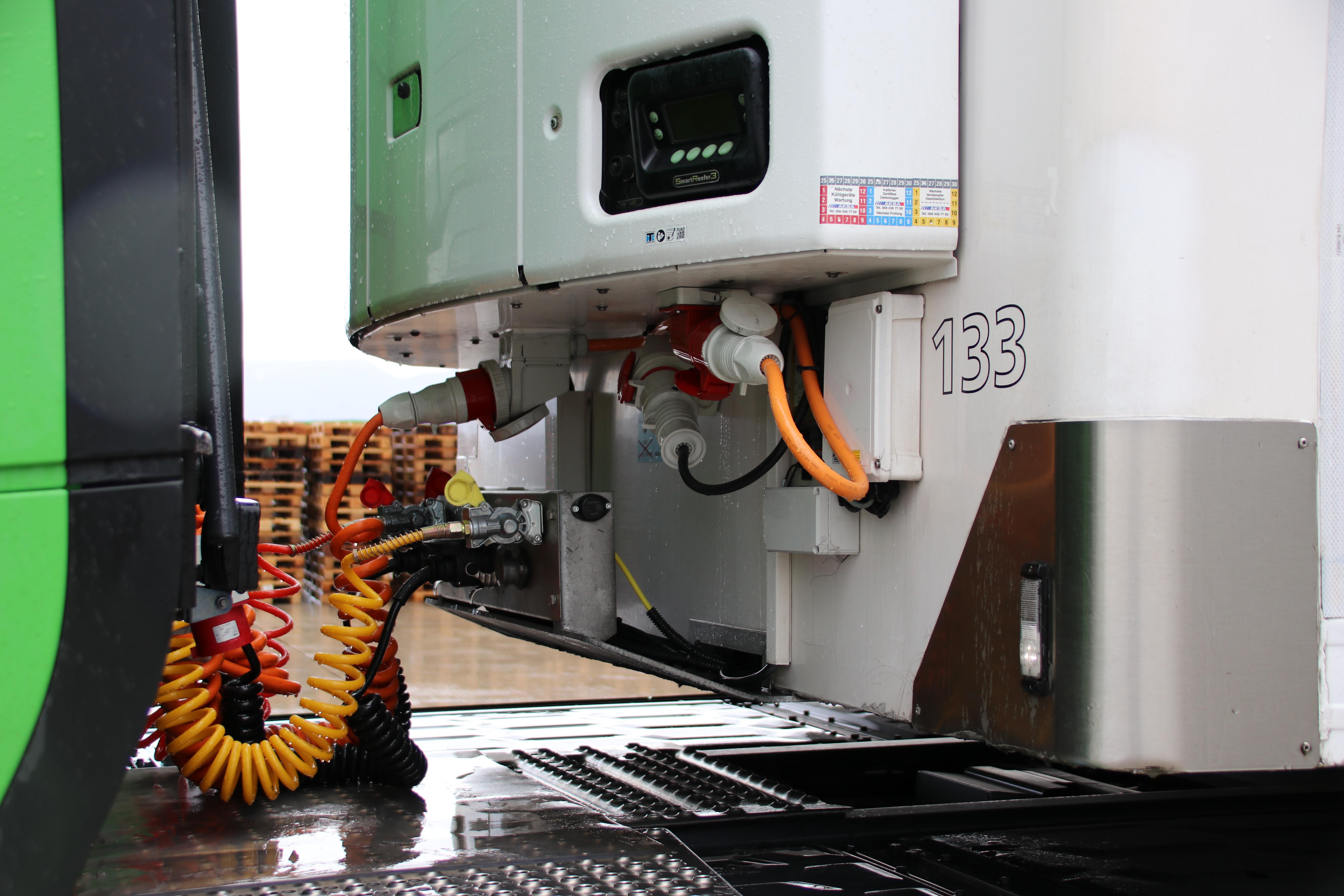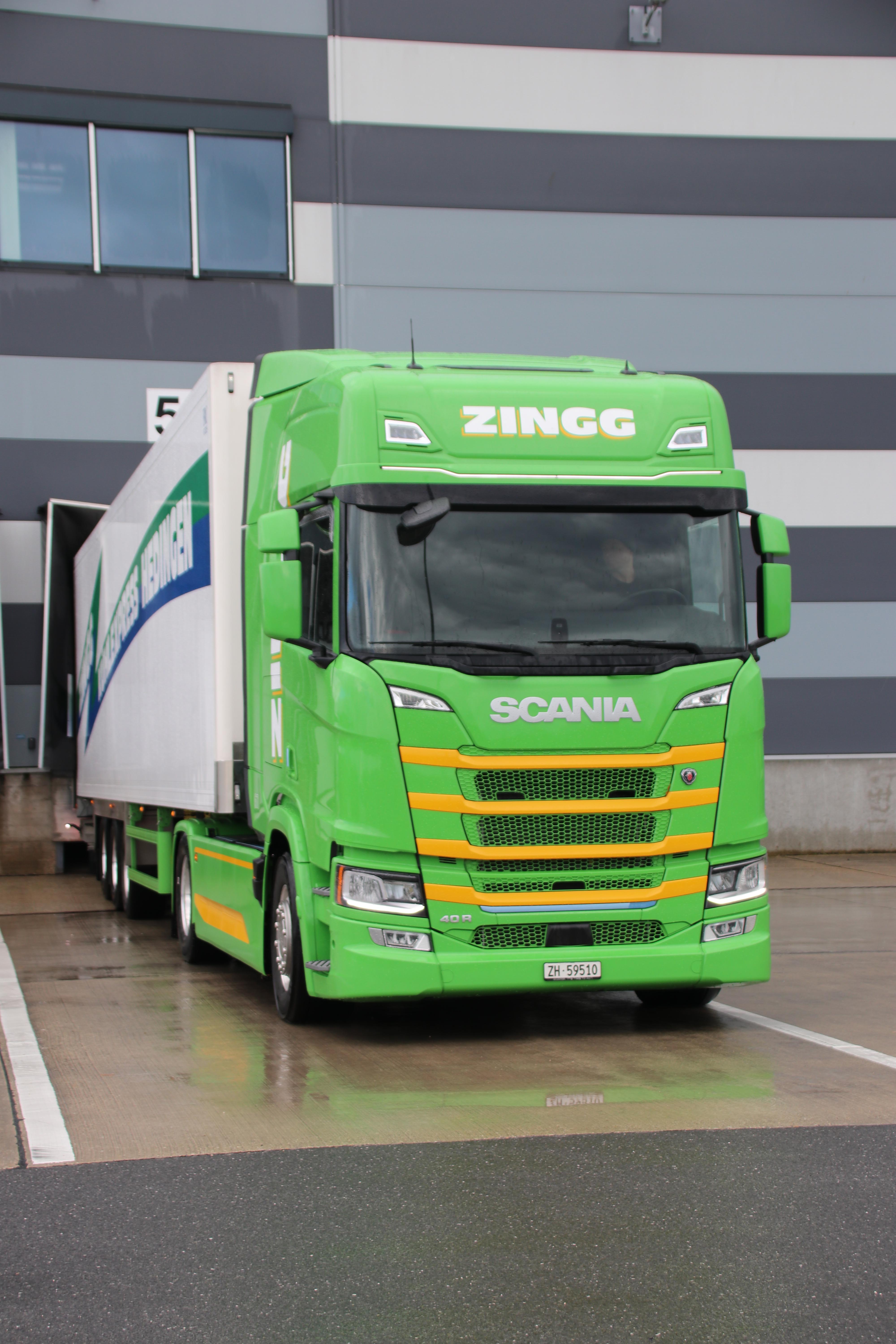 Non seulement le BEV Scania dispose d'une propulsion entièrement électrique, mais l'appareil de refroidissement situé à l'avant de la semi-remorque est également alimenté uniquement à l'électricité par le véhicule tracteur. Avec cette solution, on peut en effet être fier d'un véhicule utilitaire 100% électrique avec 0% d'émissions de CO2. Il s'agit d'une nouvelle étape importante dans l'histoire de la société Zingg Transporte AG et dans ses efforts pour un transport sans émissions.
