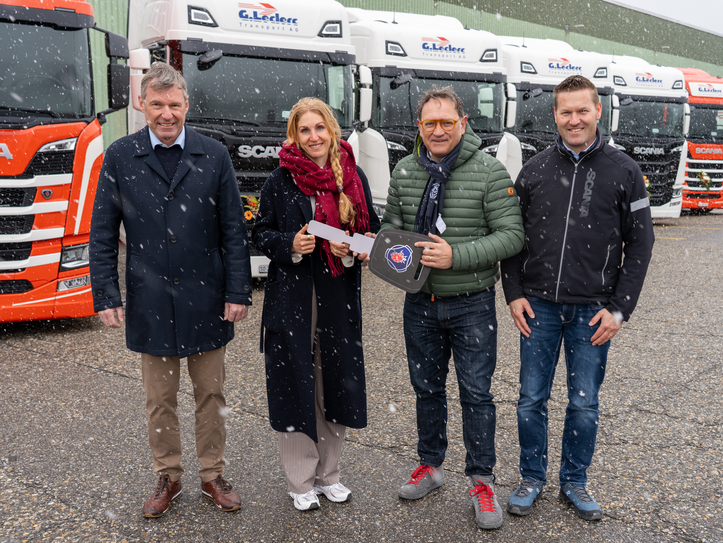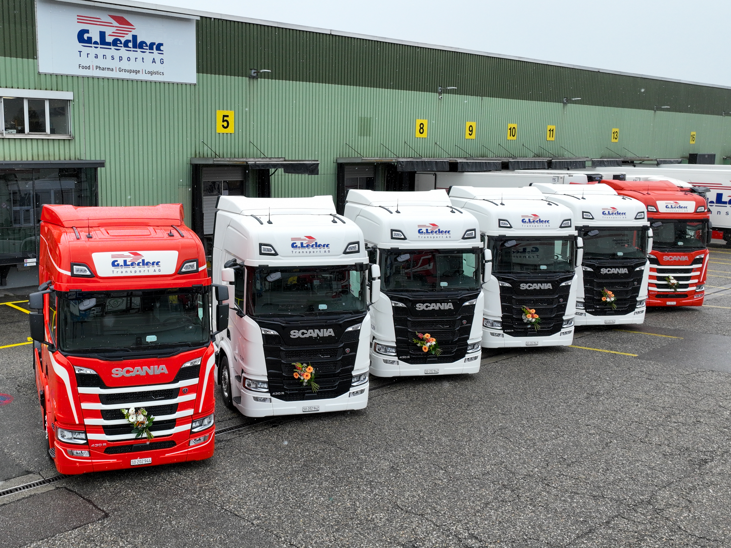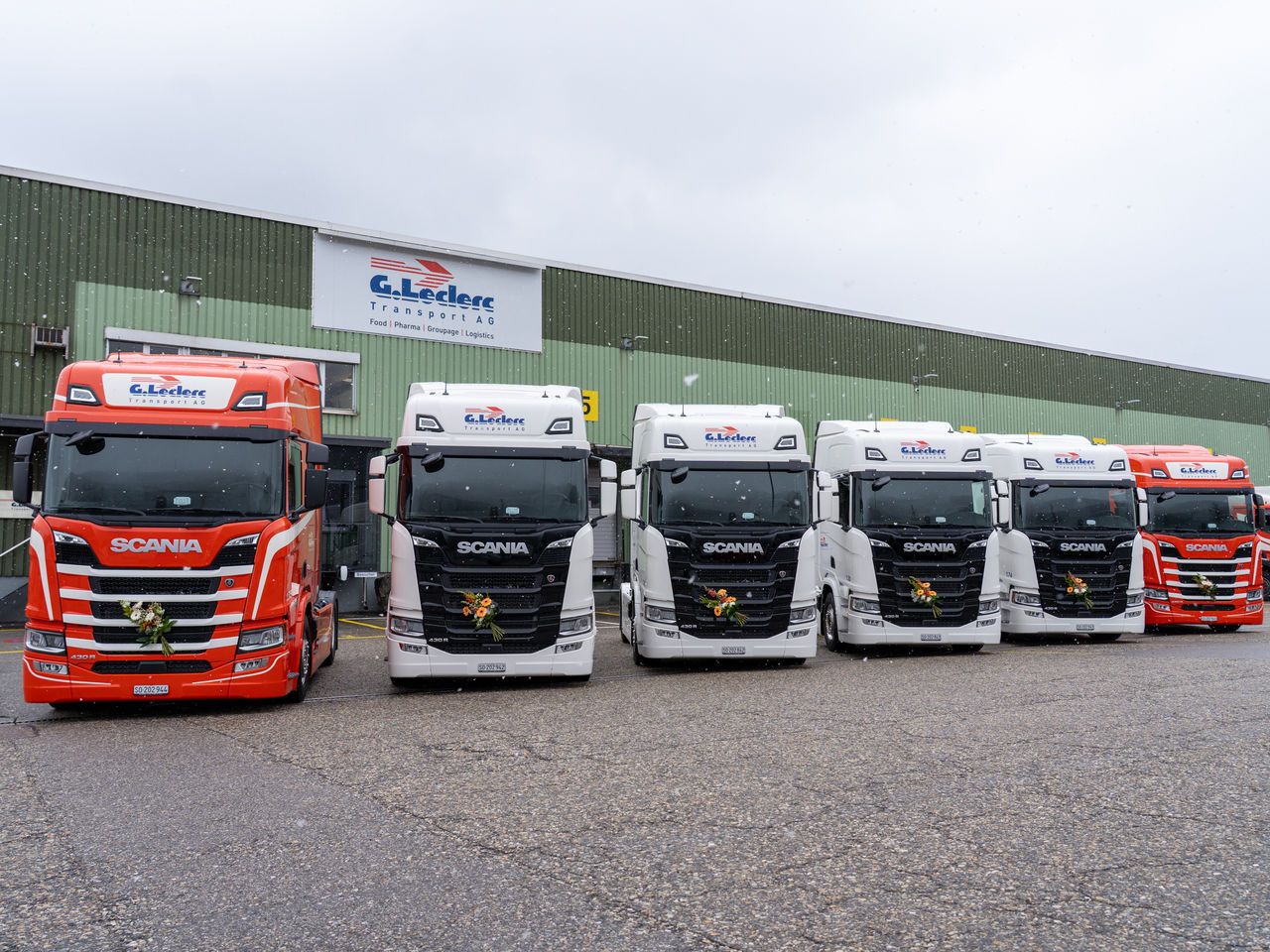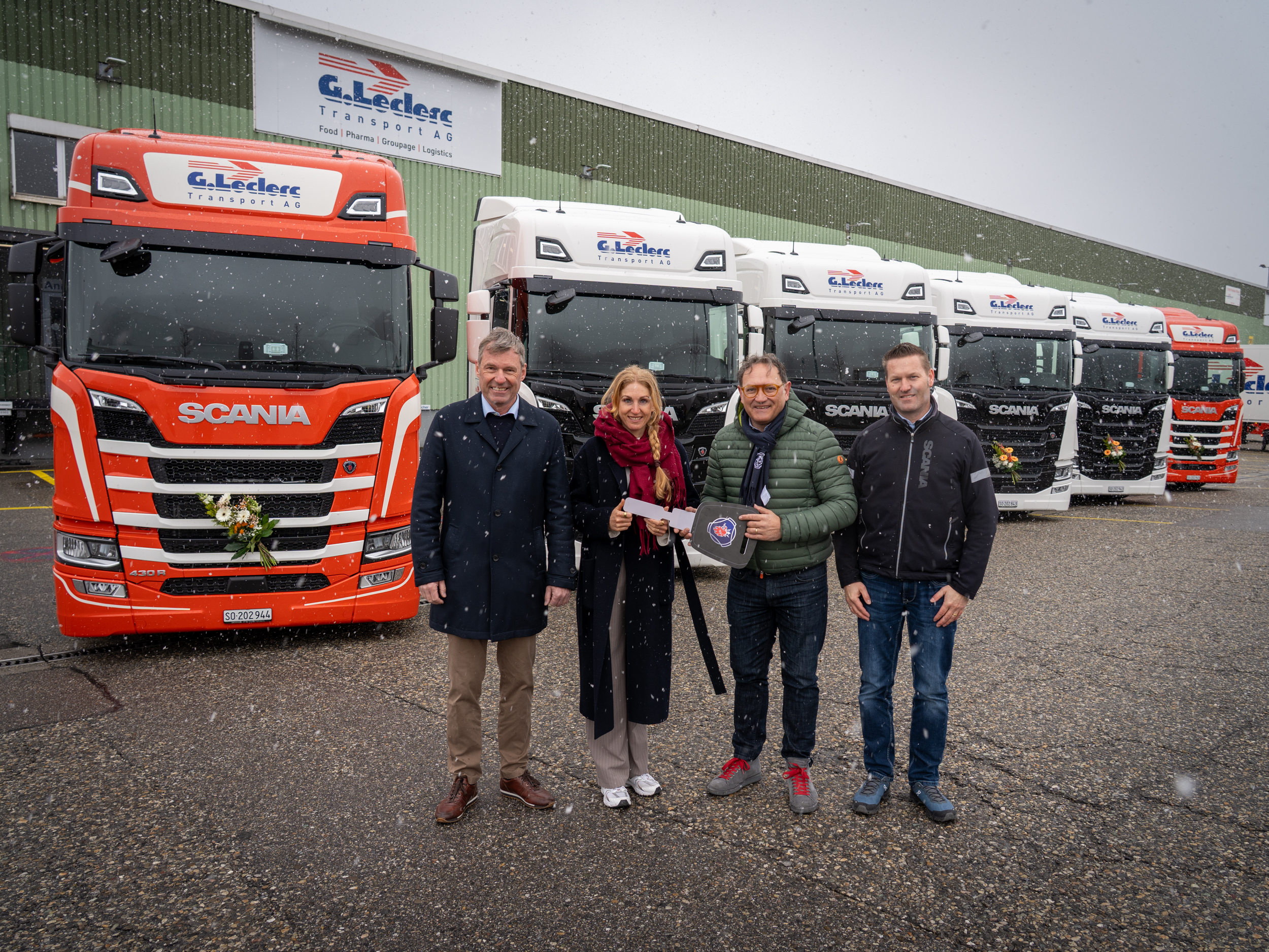 Avec la remise de six tracteurs routiers Scania identiques du type 430 R A4x2, G. Leclerc Transport SA développe de manière ciblée son parc de véhicules. Les véhicules ont été officiellement remis au sein de l’entreprise familiale basée à Egerkingen par des représentants de Scania Suisse SA.